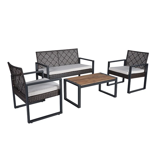 Gymax 4 Piece Outdoor Acacia Wood Furniture Set Patio Rattan Conversation Set w/ Table