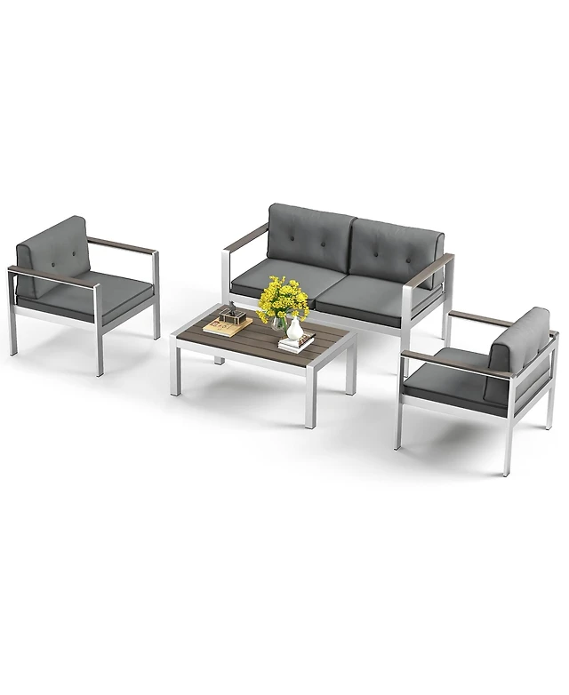 4 Pieces Patio Furniture Set Aluminum Frame Cushioned Sofa