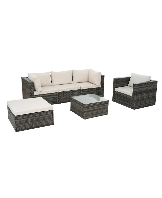 Gymax Set of 6 Rattan Furniture Set Patio Cushioned Sofa Coffee Table