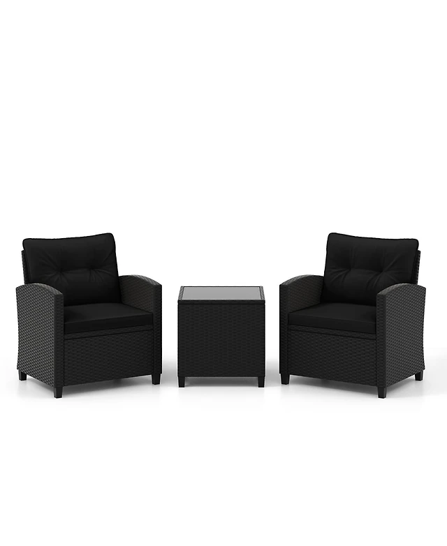 Gymax 3 Pcs Patio Furniture Set Weatherproof Outdoor Conversation Set w/ Soft Cushions