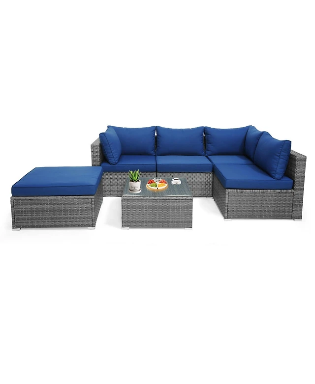 6 Pcs Patio Rattan Furniture Set with Sectional Cushion