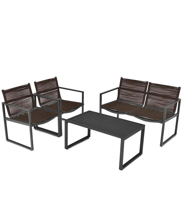 Gouun 4-Piece Patio Furniture Set with Loveseat Single Chairs and Table