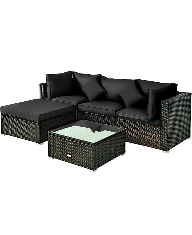 Gymax 5PCS Patio Set Sectional Rattan Wicker Furniture Set w/ Black Cushion