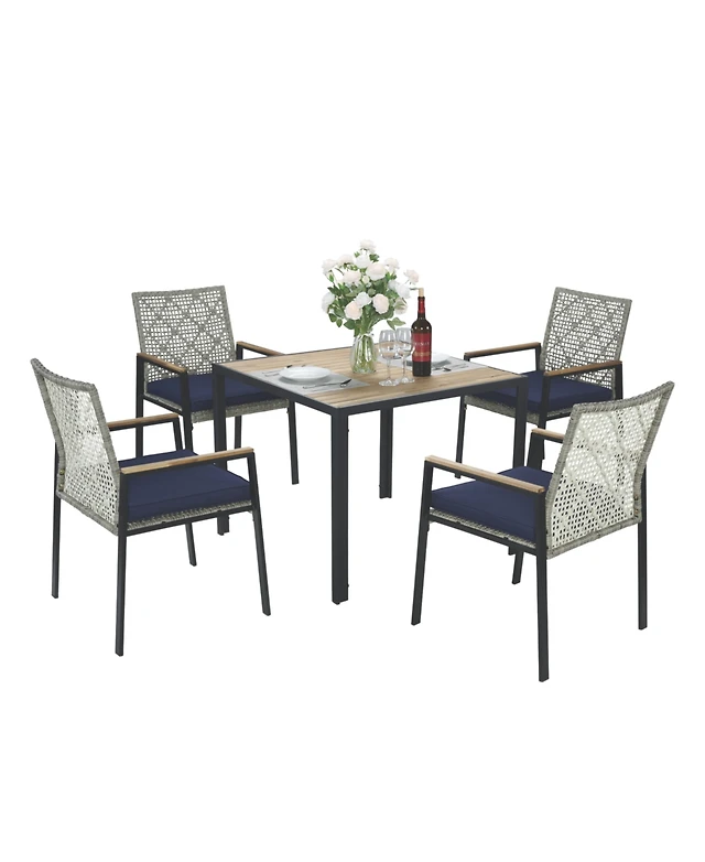 Gymax 5PCS Rattan Patio Dining Table Set Outdoor Furniture Set w/ 4 Seat Cushions