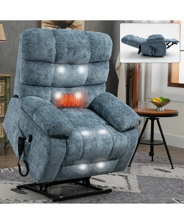 Streamdale Furniture Lift Recliner Heat Massage Dual Motor Infinite Position Blue