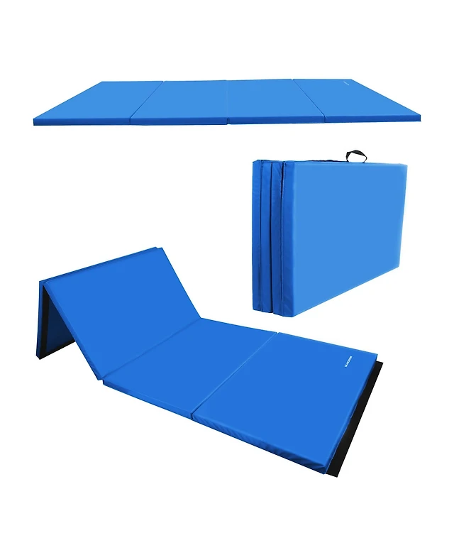 Hongge 4ft x 4ft x 4in Bi-Folding Gymnastic Tumbling Mat with Handles and Cover-Blue