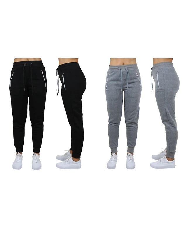 Galaxy By Harvic Women's Loose Fit Fleece Lined Jogger Sweatpants with Zipper Pockets-2 Pack