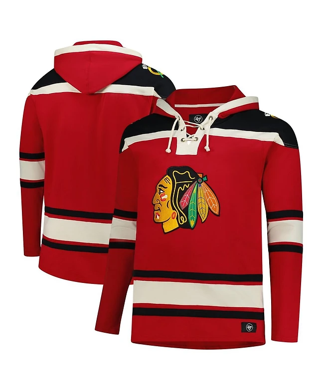 '47 Brand Men's Red Chicago Blackhawks Big Tall Superior Lacer Fleece Pullover Hoodie