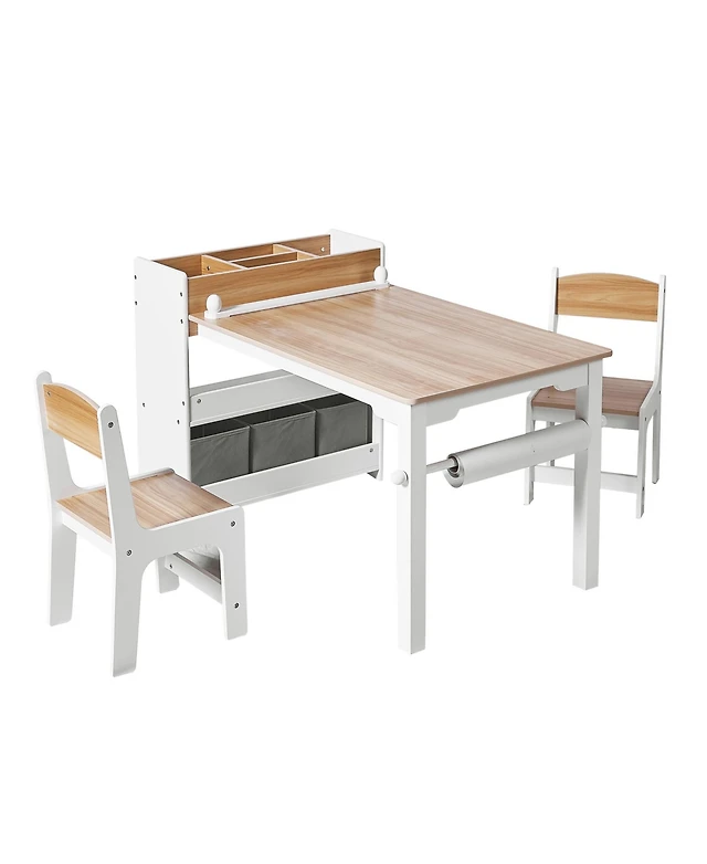 LuxenHome Children Play Table with Bookcase and 2 Chairs Set