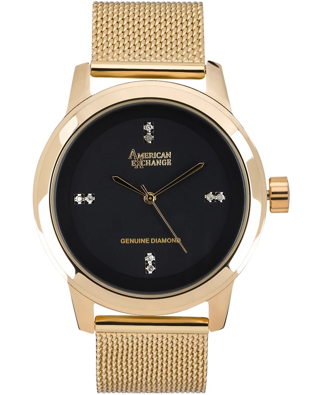 American Exchange Women's Genuine Diamond Black Dial and Metal Narrow Bracelet Analog Watch 28mm
