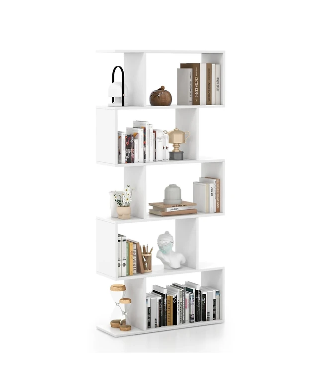 1 Pc 5-Tier Bookshelf Geometric S-Shaped Bookcase Room Divider Storage Display Shelf