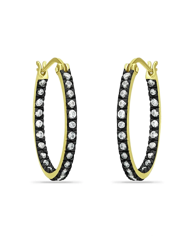 Giani Bernini 20mm Cubic Zirconia with Black Rhodium Oval Inside Outside Hoop Earringss, 18K Gold over Silver
