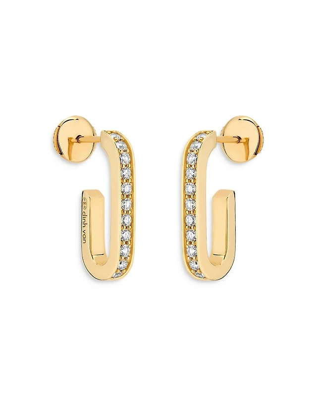 18k Yellow Gold Plain Round Diamond Drop Huggie