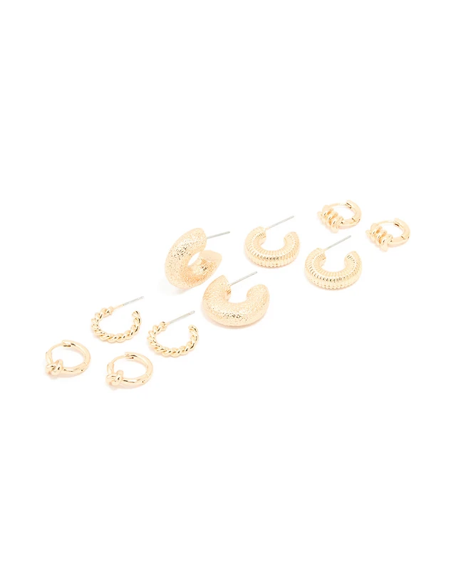 Gold Hammered & Teardrop Hoop Earrings 3-Pack