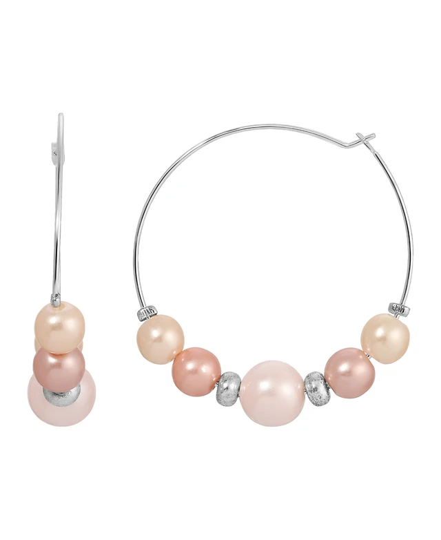 2028 Multi Color Imitation Pearl Hoop Earrings