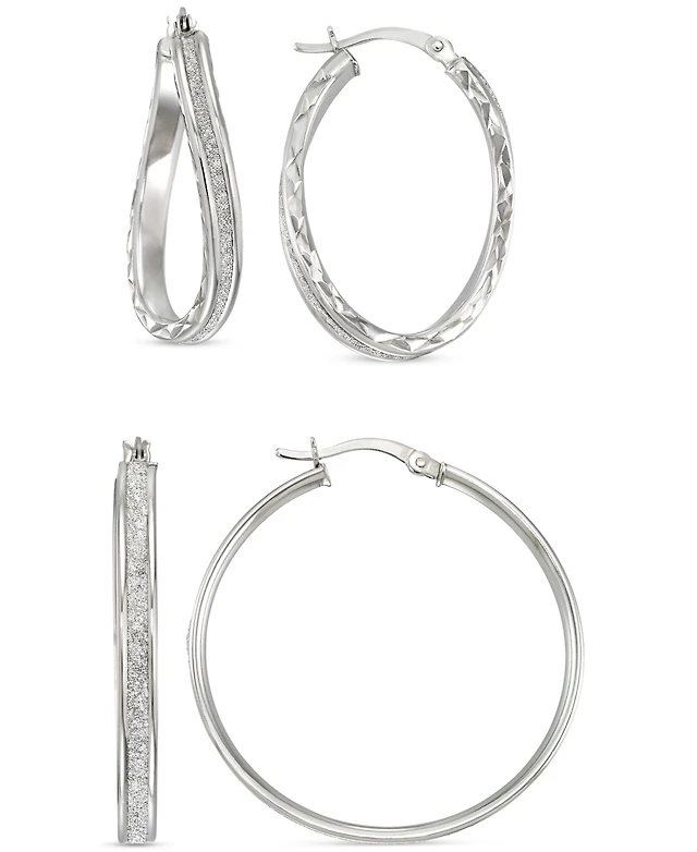 Macy's Polished Graduated Ribbed Small Hoop Earrings