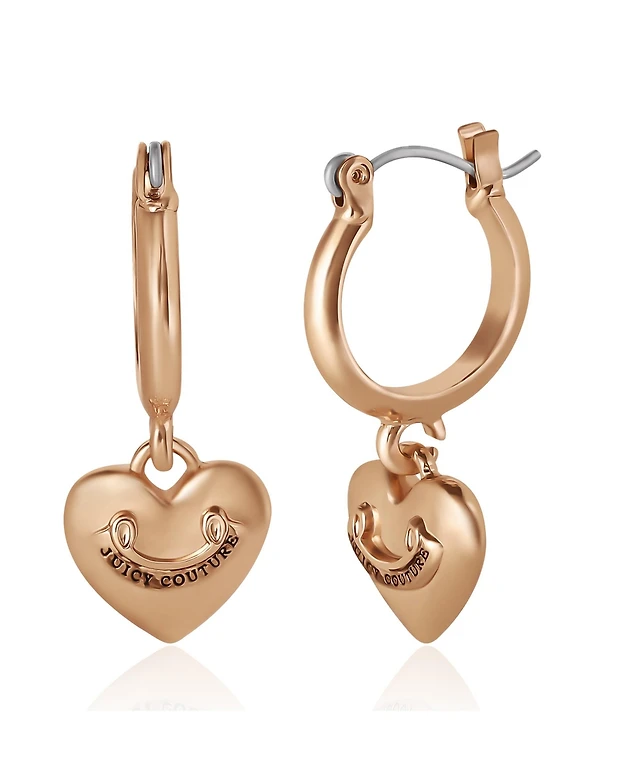 Dkny Gold-Tone Heart Charm Pave Hoop Earrings
