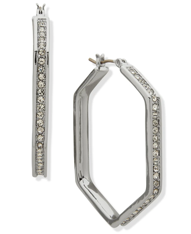 Karl Lagerfeld Paris Small Pave Hoop Earrings, 0.54"