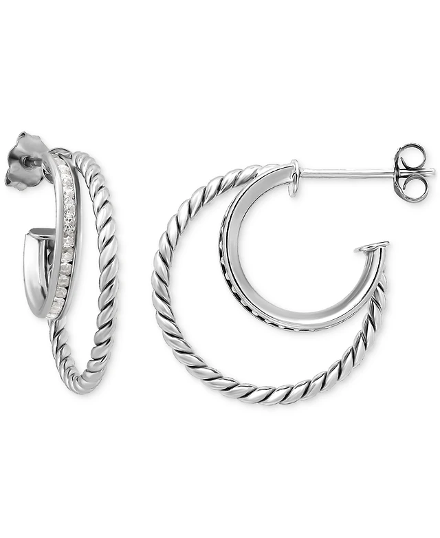 Macy's Cubic Zirconia Rhodium Plated Pave Hammered Hoop Earrings