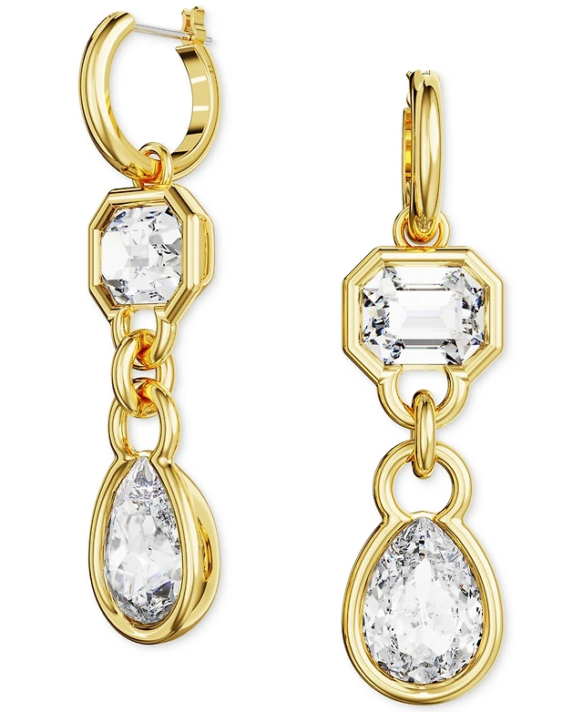 Swarovski Gold-Tone Mixed Crystal Double Charm Hoop Earrings