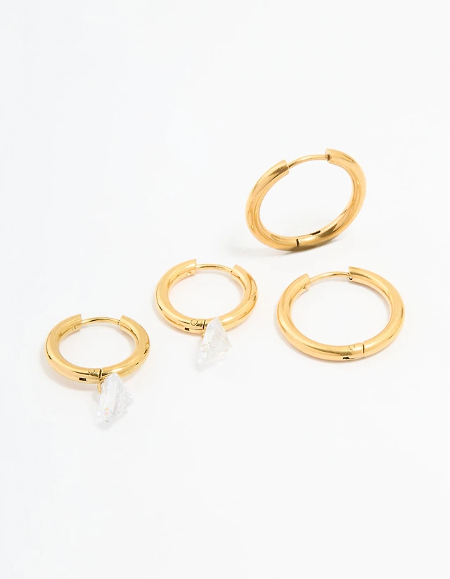 Anne Klein Gold-Tone 3-Pc. Set Crystal, Textured, & Puffy Small Hoop Earrings