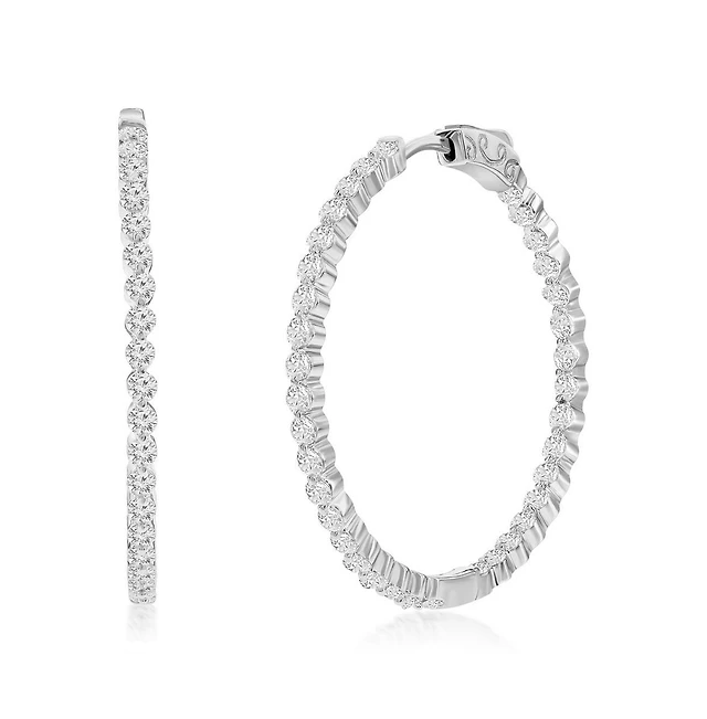 Diamond and Out Hoop Earrings (3 ct. t.w.) 14k White or Yellow Gold