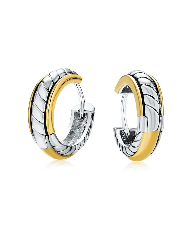 Bling Jewelry Two Tone Twist Cable Rope K-pop Huggie Hoop Earrings Hinge