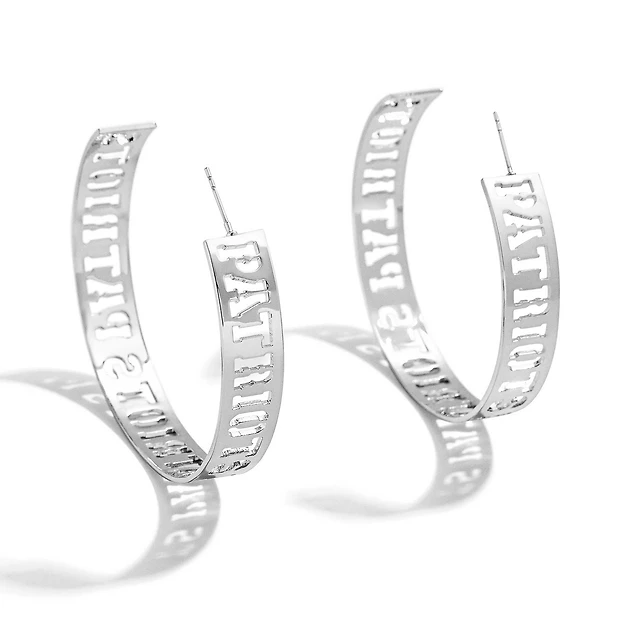 And Now This Polished "Do All Things With Love" Message C-Hoop Earring in Silver Plate
