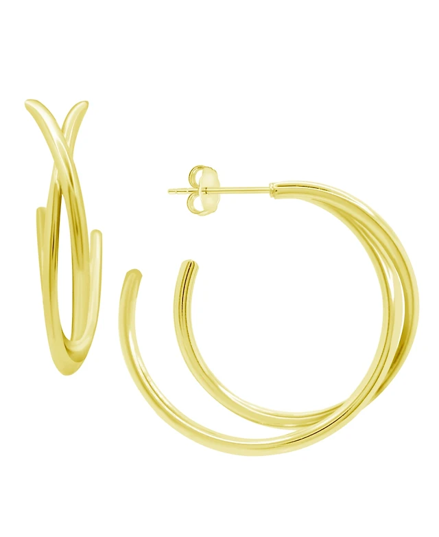 Wavy Round Hoop Earrings 14k Gold Over Sterling Silver, 2-3/8" (Also Silver)
