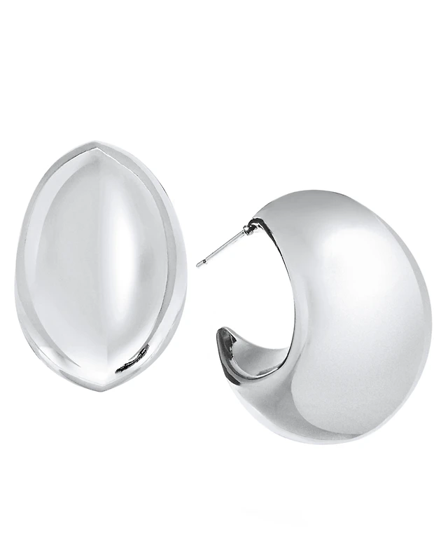 Textured C-Hoop Earrings 14k Gold Vermeil over Sterling Silver, 2-1/4" (Also Silver)