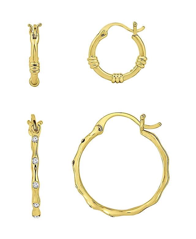 and Now This Duo Crystal Hoop Textured Hoop, Set of 2