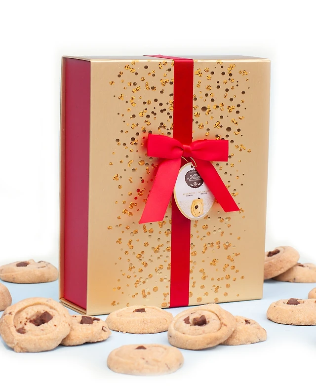 Mary Macleod's Shortbread Signature Gold Gift Box with Red Ribbon Chocolate Crunch Shortbread, 18 Pieces