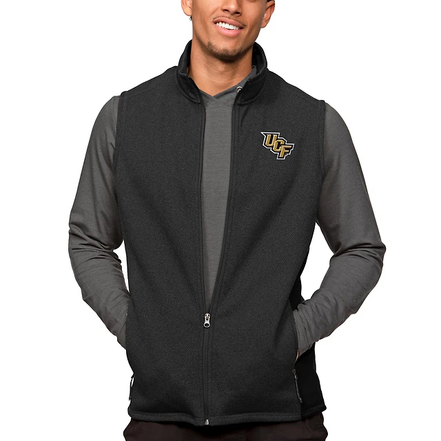 Men's Antigua Black UCF Knights Links Full-Zip Golf Vest