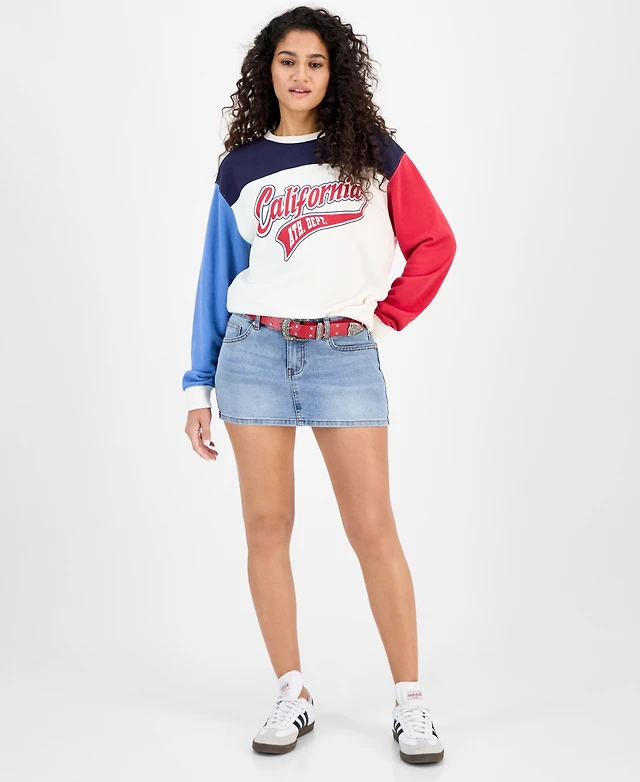 Madden Girl Juniors' Contrast-Waist Denim Skirt
