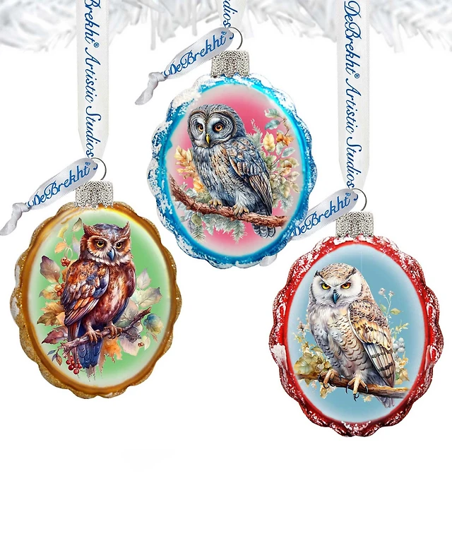 Designocracy Wise Owls Keepsake Mercury Christmas Glass Ornaments Set of 3 G. DeBrekht