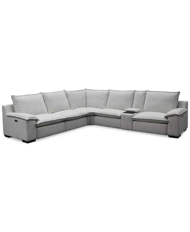 Thandler 5-Pc. Leather L Shape Sectional with 3 Power Recliners and 1 Storage Console, Exclusively at Macy's