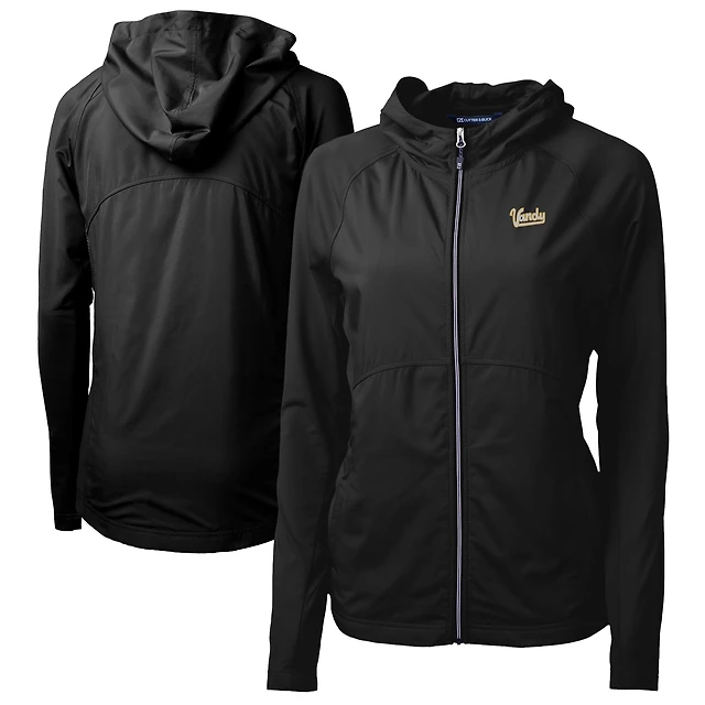 Women's Cutter & Buck Black Vanderbilt Commodores Vault Evoke Hybrid Eco Softshell Recycled Full-Zip Vest