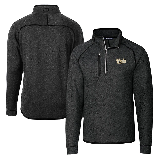 Men's Cutter & Buck Heather Charcoal Vanderbilt Commodores Vault Mainsail Sweater Knit Fleece Full-Zip Vest