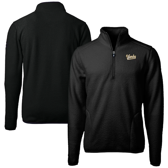 Men's Cutter & Buck Gray Vanderbilt Commodores Primary Logo Adapt Eco Knit Stretch Raglan Quarter-Zip Pullover