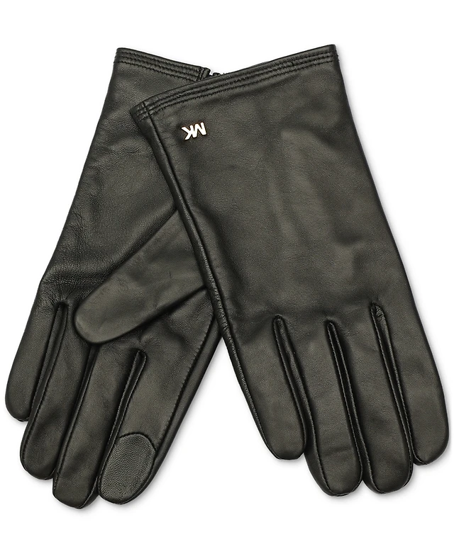 Michael Kors Women's Logo Detail Leather Tech Gloves