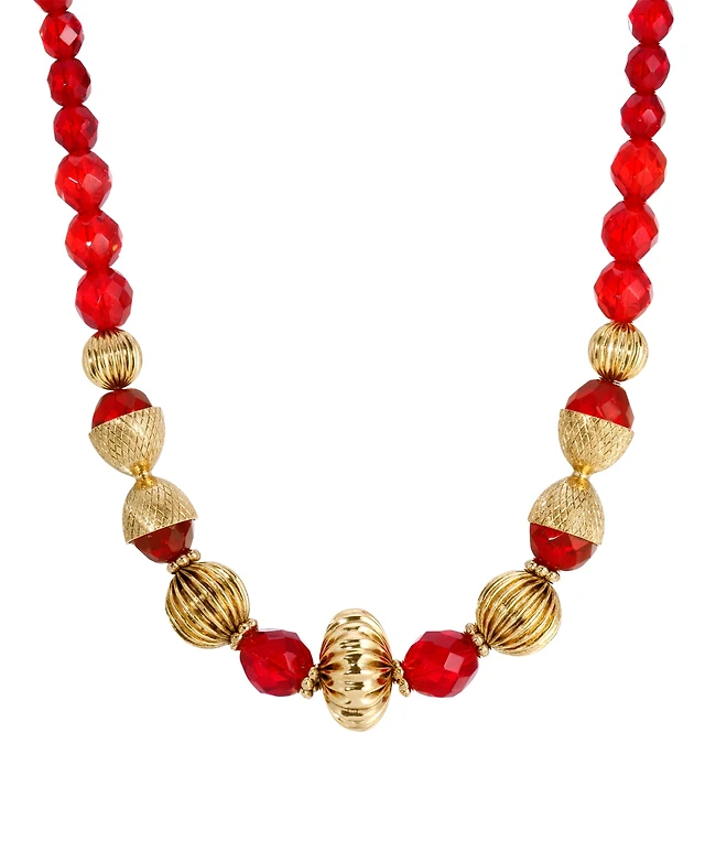 14K Yellow Gold Fire Opal Rondelle Bead Necklace with Diamonds, 0.11 tcw