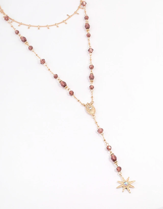 Gold Beaded Sea Star & Sea Charm Layered Necklace Set