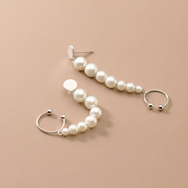 Sterling Silver 14k Yellow Gold with White Freshwater Pearl Open Geometric Abstract Art Earrings