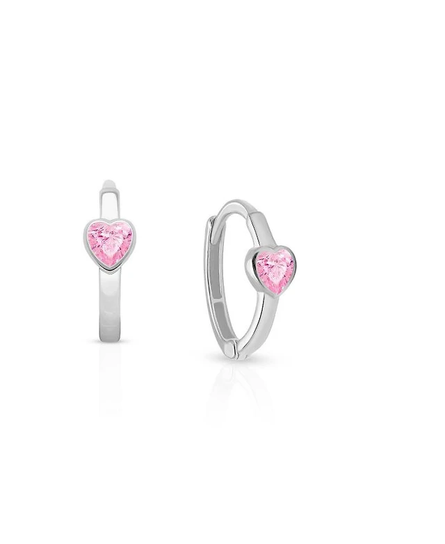 Girls' 14K Gold Fearless Heart Pink & Clear Drop Screw Back Earrings - Little Kid, Big Kid