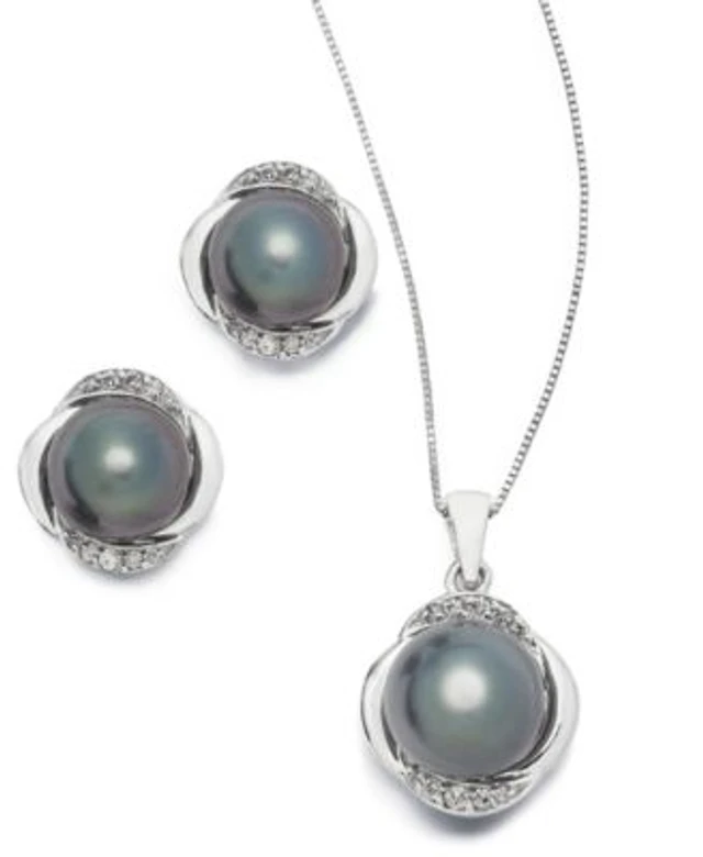 Black Cultured Tahitian Pearl Diamond Jewelry Collection In 14k White Gold