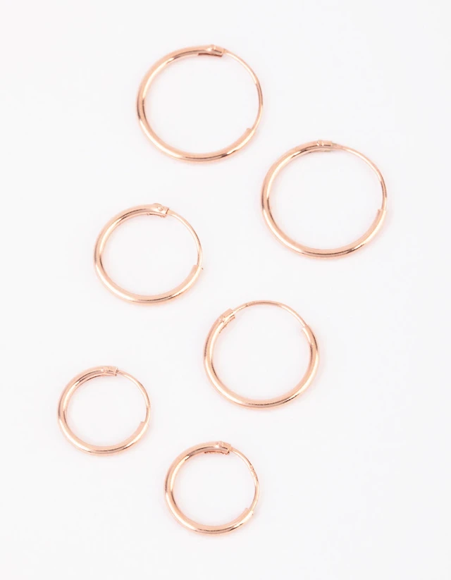 Rose Gold Plated Sterling Silver Plain Hoop Earring Pack