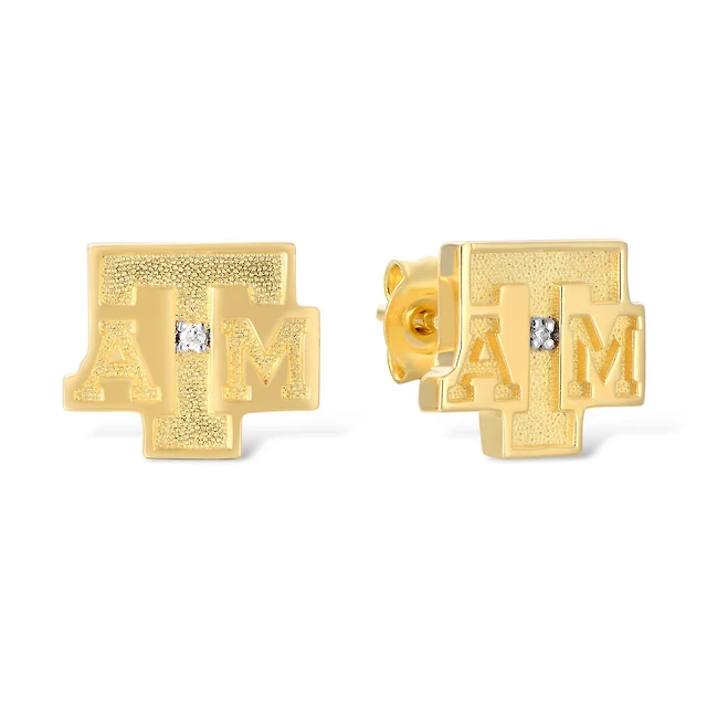 FanDrip Texas A&M Aggies 14K Gold-Plated Diamond Accent Stud Earring