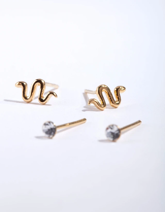 14K Gold Plated Cubic Zirconia Stud Earrings