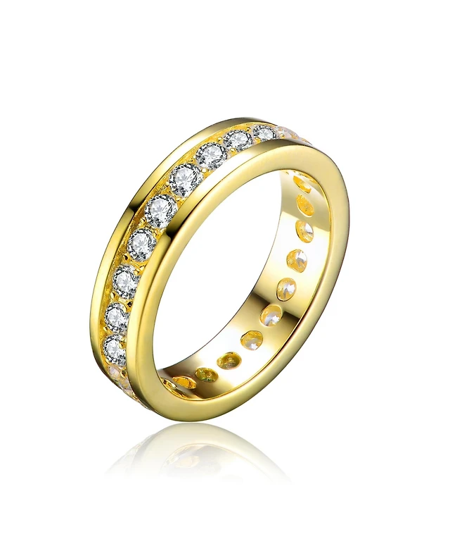 Macy's Cubic Zirconia (0.25 ct. t.w.) and Pink Enamel Heart Eternity Band Ring 14K Yellow Gold Over Sterling Silver
