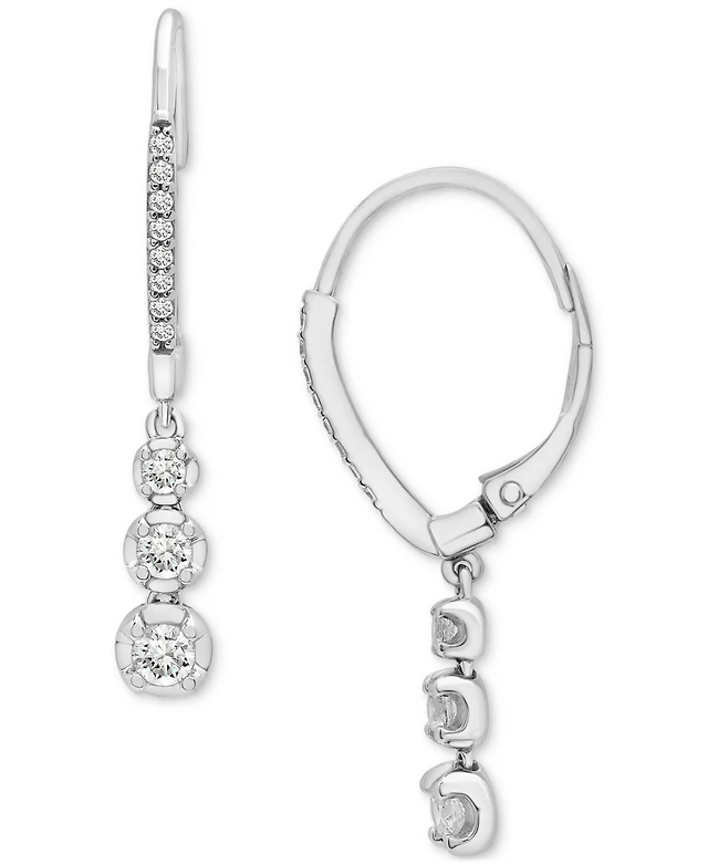 Diamond Round & Baguette Halo Cluster Drop Earrings (1/3 ct. t.w.) in 14k White Gold